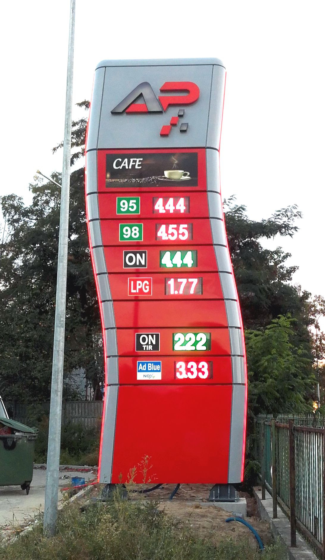 | Znaki kierujące i znaki produktowe | Animowane piktogramy i oznakowanie kierunkowe (głównie stacje paliw): wysoka jasność do pracy w pełnym słońcu; dynamiczna treść zwiększająca widoczność informacji i rozpoznawalność obiektu. |