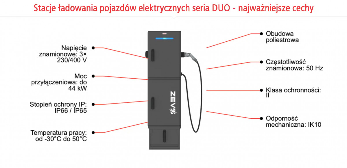 | Stacje ładowania pojazdów elektrycznych ZEVS | Producent stacji ładowania (ZEVS) z możliwością konfiguracji i personalizacji pod inwestycję. Emiter podkreśla doświadczenie w elektromobilności – pierwsza stacja ładowania firmy została zbudowana w 2011 roku. Wskazywane są różne modele/serie (m.in. SOLID, DUO, CITY, MINI) oraz warianty instalacji: model dedykowany użytkownikowi lub wdrożenia w ramach sieci ładowarek dla klientów. |