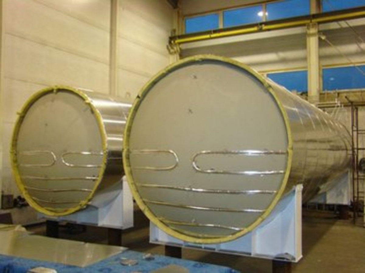 | Instalacje procesowe do zbiorników (grzewcze, termiczne, sterujące) | Wykonanie rozwiązań wspierających pracę zbiorników: instalacje grzewcze (kable zewnętrzne / grzałki wewnętrzne / wężownice wodne-parowe), instalacje termiczne (izolacje z wełny mineralnej lub pianki PUR, obłożenie blachą: ocynk/aluminium/nierdzewna), instalacje sterujące (zawory, pompy, czujniki kontrolno-pomiarowe, integracja z procesem technologicznym). |