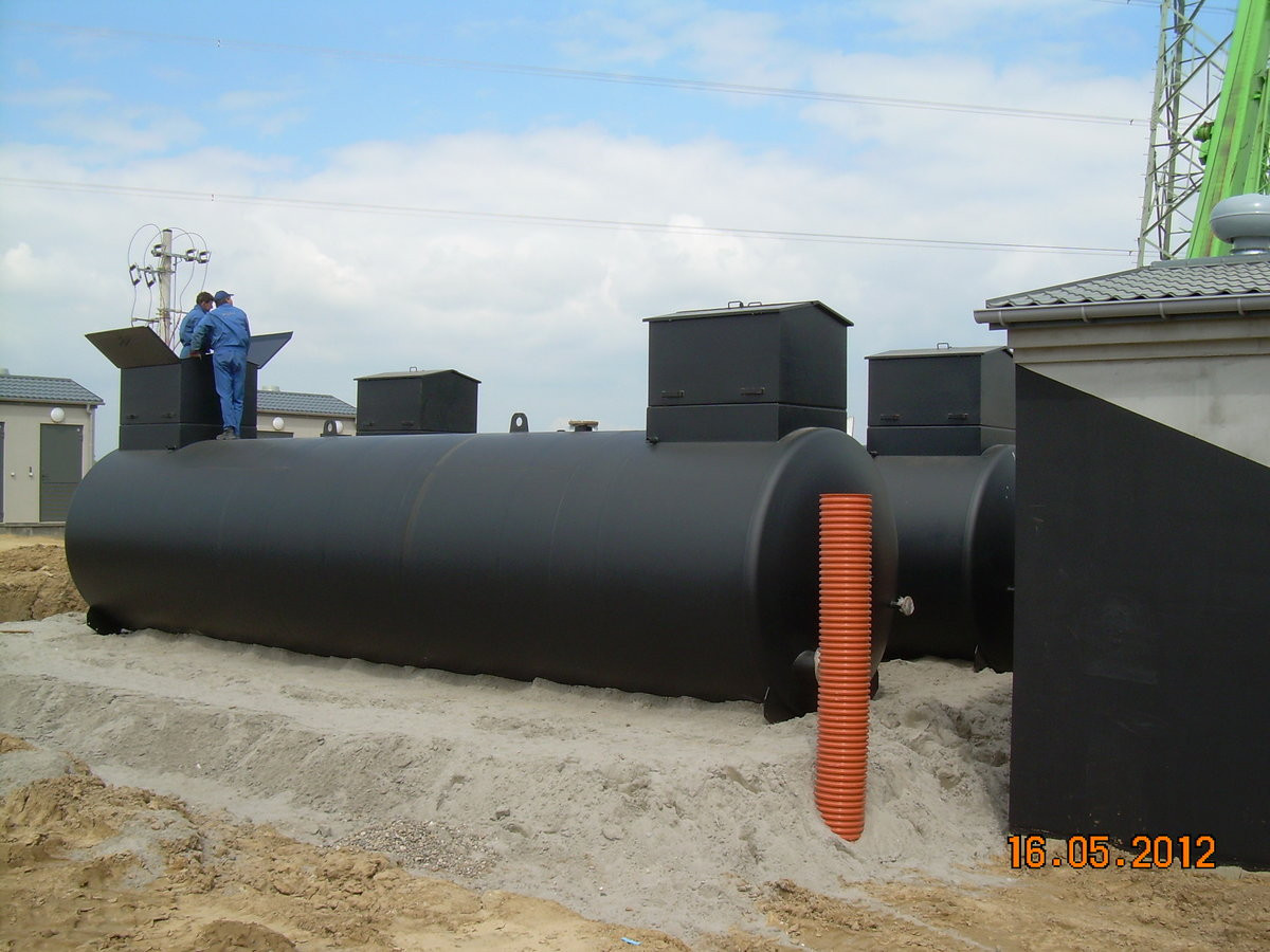 | Zbiorniki do wody p.poż. (izolacja asfaltowa IW-80 / IW-100) | Zbiorniki do wody p.poż. wykonywane według uzgodnionego standardu dokumentacji, przygotowane pod montaż sond i czujników, z zabezpieczeniem warstwą izolacyjną z asfaltu IW-80 lub IW-100. Aktualna konstrukcja uwzględnia m.in. wyznaczenie pojemności rzeczywistej (z uwzględnieniem stref martwych i czujników granicznych), wyposażenie w króćce przyłączeniowe, włazy, studzienki, kosz ssawny, płytę antywirową oraz zabezpieczenia antykorozyjne (wewn./zewn.) farbą poliuretanową. |