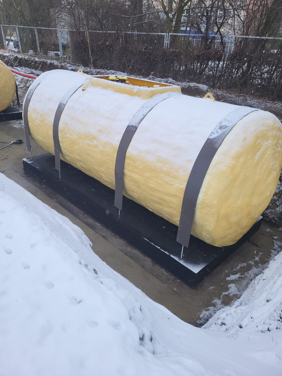 Dostawa i montaż podziemnego zbiornika oleju opałowego (najazdowy) V50 m³ wraz z pracami ziemnymi, odtworzeniami nawierzchni, próbą szczelności i odbiorami UDT, układem tłoczenia, rurociągami, szczelną tacą rozładunku autocysterny, kontrolno-pomiarem i rozruchem technologicznym. |