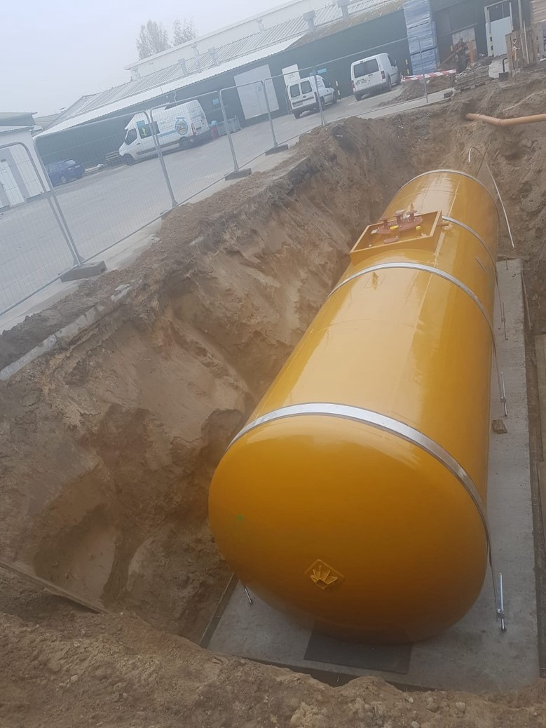 Budowa zakładowej stacji paliw: zbiornik podziemny dwupłaszczowy V10 m³, rurociągi, system kontrolno-pomiarowy, szczelna nawierzchnia rozładunku, zestaw pompowy, rozruch i odbiory. |