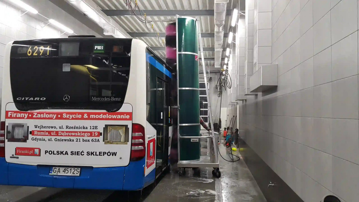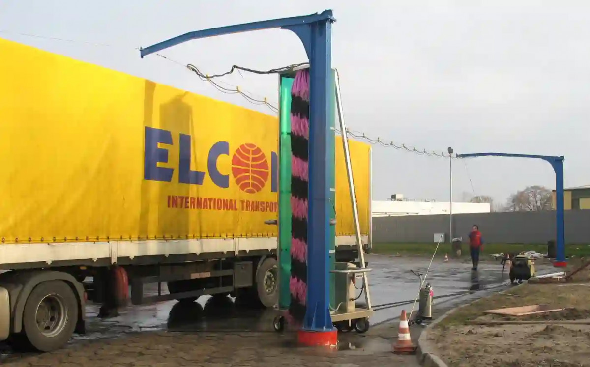 | Mobilne myjnie jednoszczotkowe (objazdowe) | Urządzenia do mycia dużych pojazdów w miejscu pracy (bez budowy klasycznej myjni portalowej): szczotka myjąca w wersji ciągniętej oraz samojezdnej. Zastosowania: tabor ciężarowy, autobusy, cysterny, tramwaje i inne pojazdy wielkogabarytowe. |