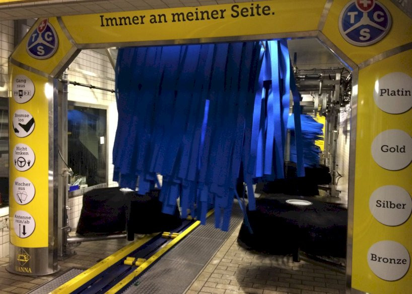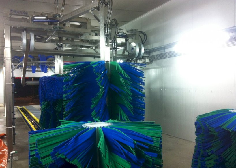 | Myjnie tunelowe (Coleman Hanna) | Myjnie tunelowe hybrydowe z modułami mycia/konserwacji/osuszania ustawionymi w linii. Wysoka przepustowość: auto „zderzak w zderzak” co 30–60 s, nawet 80–100 aut/h. W technologii Coleman Hanna istotnym wyróżnikiem są napędy hydrauliczne (zamiast elektrycznych) oraz konstrukcje ze stali nierdzewnej. |