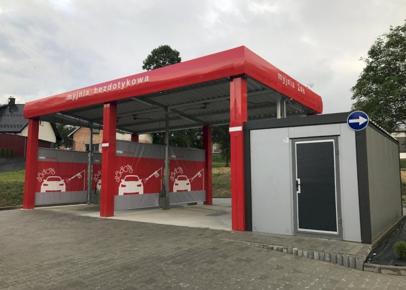 | Myjnie bezdotykowe (samoobsługowe) | Myjnie wykonywane ze stali nierdzewnej, z systemami zapobiegającymi zamarzaniu i niezależnymi układami dozowania detergentów i ciśnienia. Typowo 6–7 programów (od aktywnej piany po płukanie wodą zdemineralizowaną). Standard obejmuje m.in.: ekran dotykowy operatora, pompy CAT (130 bar robocze), regulację ciśnienia falownikiem, sterowanie PLC, instalacje elektryczne i hydrauliczne. |