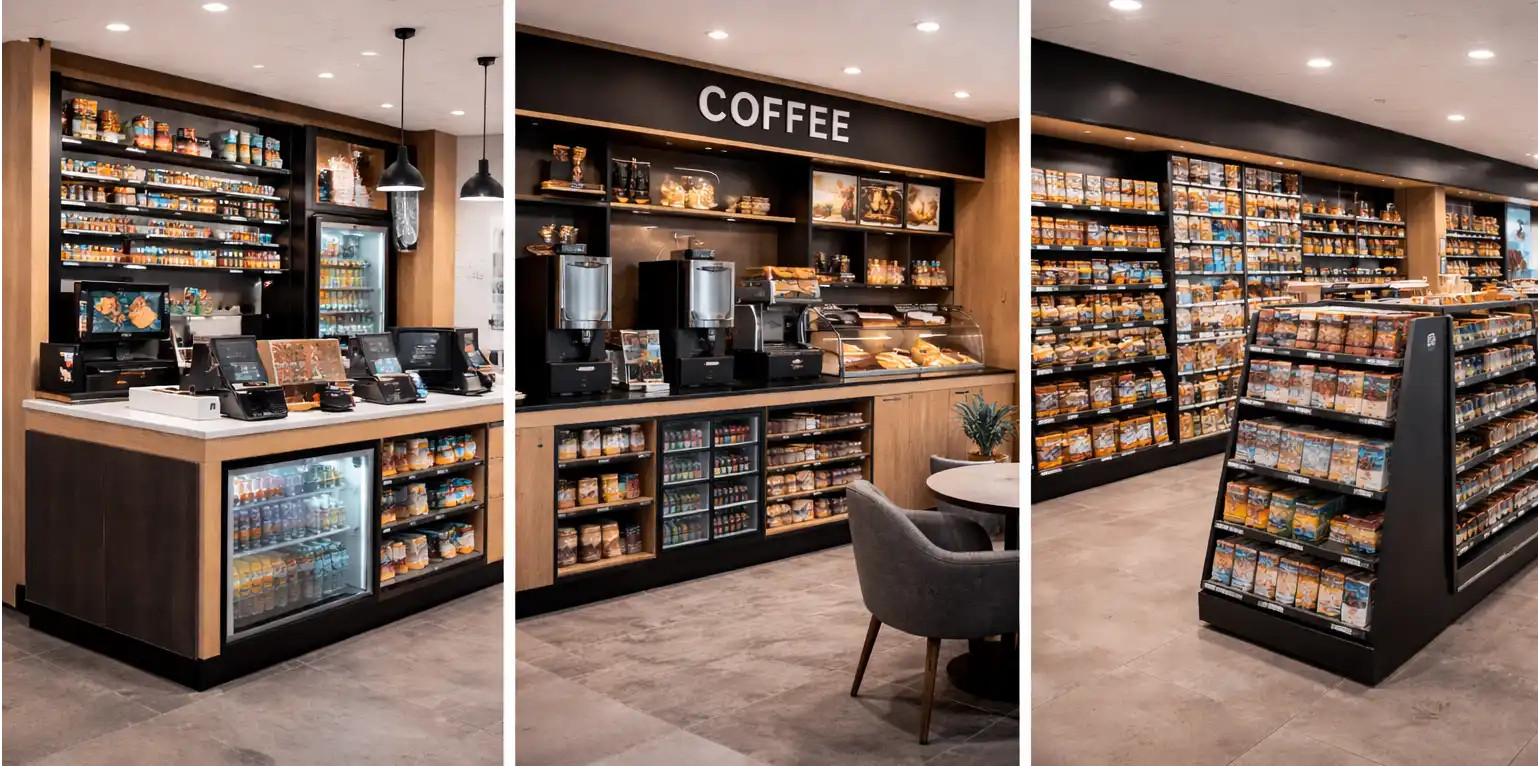 Cena wykonania zabudów meblowych na stacji paliw obejmuje wyłącznie ich zaprojektowanie i realizację. W praktyce całkowity koszt zależy również od tego, jak zabudowa została zaplanowana i jak dobrze pasuje do sposobu działania sklepu – dziś i w kolejnych latach.