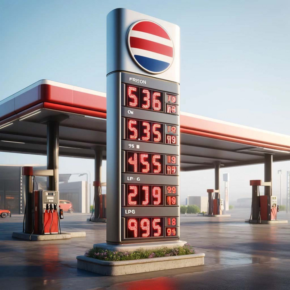 Wysokość: 5-6 m, Gatunki paliw: 3, wysokość cyfr 25 cm, kolor czerwony, Sterowanie: bezprzewodowe, Wyświetlacze: o dużej jasności z automatyczną regulacją jasności, Oświetlenie nocne: od wewnątrz diodami LED IP 68, sterowanie czujnikiem zmierzchowym, Poszycie: wykonane z blachy aluminiowej, Grafika: podświetlana wycinana laserem i podklejana plexi, Konstrukcja nośna: stalowa wykonana z profili zimnowalcowanych spawanych, Gwarancja: 3 lata.