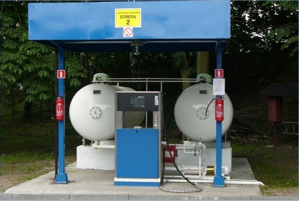 • dystrybutor LPG jedno lub dwu wężowy, zamontowany obok zbiorników naziemnych lub na wysepce razem z dystrybutorami paliwowymi,