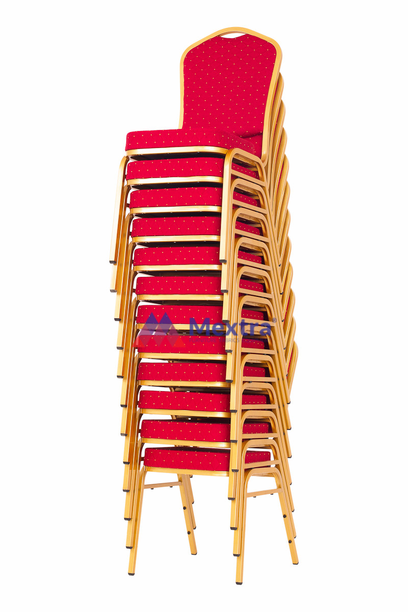 Samo krzesło to jednak nie wszystko. Bankiet to impreza o charakterze uroczystym i aranżacja wnętrza musi w ten charakter doskonale się wpisywać. Jeśli aranżujemy salę bankietową dostosowując liczbę krzeseł do aktualnych potrzeb, może okazać się, że w danej chwili tych krzeseł jest za dużo. Innym razem, przy okazji organizacji większej imprezy będziemy musieli sięgnąć do naszych zasobów i zwiększyć ilość krzeseł. Jest to szeroko rozumiana mobilność w zakresie wyposażania pomieszczeń. Każdy bankiet jest inny. Na każdym potrzebna jest inna liczba stołów i krzeseł, które ustawiane są w zależności od potrzeb. Jednocześnie nie do przyjęcia jest stawianie nieużywanych krzeseł gdzieś w kącie, często na widocznym miejscu. Do tego celu powinny służyć hotelowe lub restauracyjne magazyny, schowki lub inne pomieszczenia. Bywa, że składy te są ciasne i upakowanie w nich znacznej ilości mebli nastręcza nie lada trudności. W takiej sytuacji "sposobem cud" okazuje się sztaplowanie krzeseł. Sztaplowanie krzeseł oferowanych przez MEXTRA GROUP polega na bezpiecznym układaniu krzeseł w stosie. Takie ułożenie umożliwia, w warunkach magazynowych, postawienie aż do 18 krzeseł jedno na drugim. Na jednym metrze kwadratowym można zmieścić w ten sposób 72 krzesła. Wynik naprawdę imponujący. Rozwiązanie to przekłada się więc na niezwykłą oszczędność miejsca. Wystarczy właściwie niewielka powierzchnia aby wtedy, gdy krzesła nie są nam potrzebne, przechować je do kolejnego użycia.